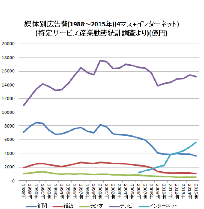そして様々な媒体が減少し電子媒体になりネット上に誰もがアクセスできる時代になると同時に広告費も上がっているのである。